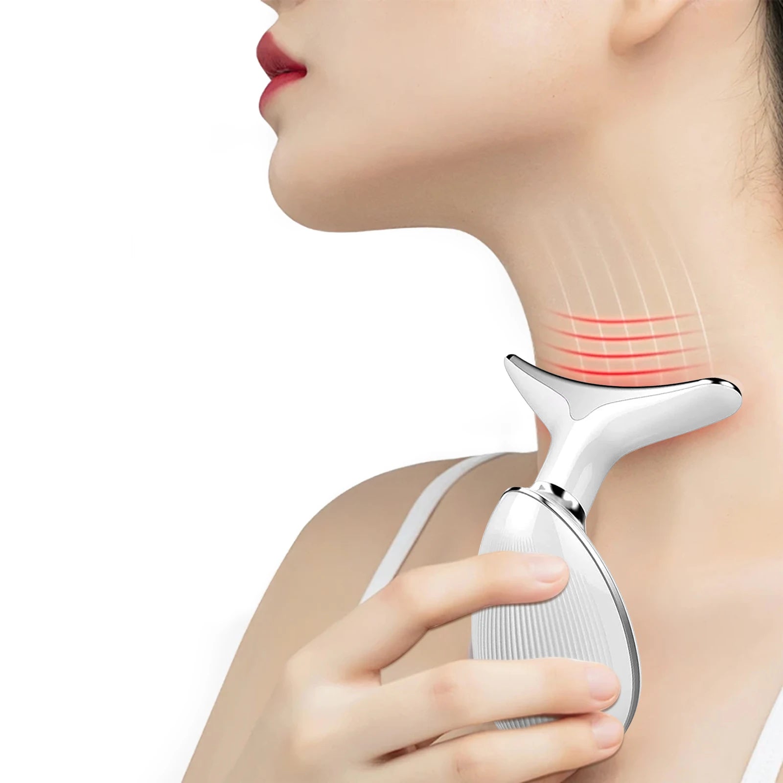 - Compact, neck-friendly design A compact, medium-sized design sits comfortably around your neck, offering adjustable pressure that adapts to your sensitivity and supports longer sessions.