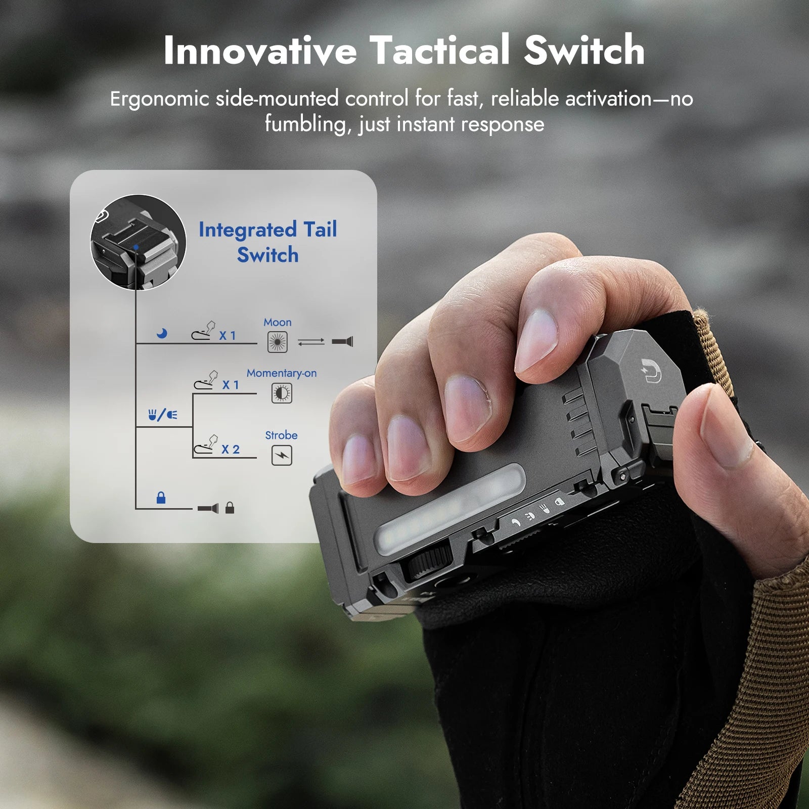 - Magnetic tail switch enables one-handed control, while RGB lighting options provide color modes for signaling, photography, or campsite ambiance.