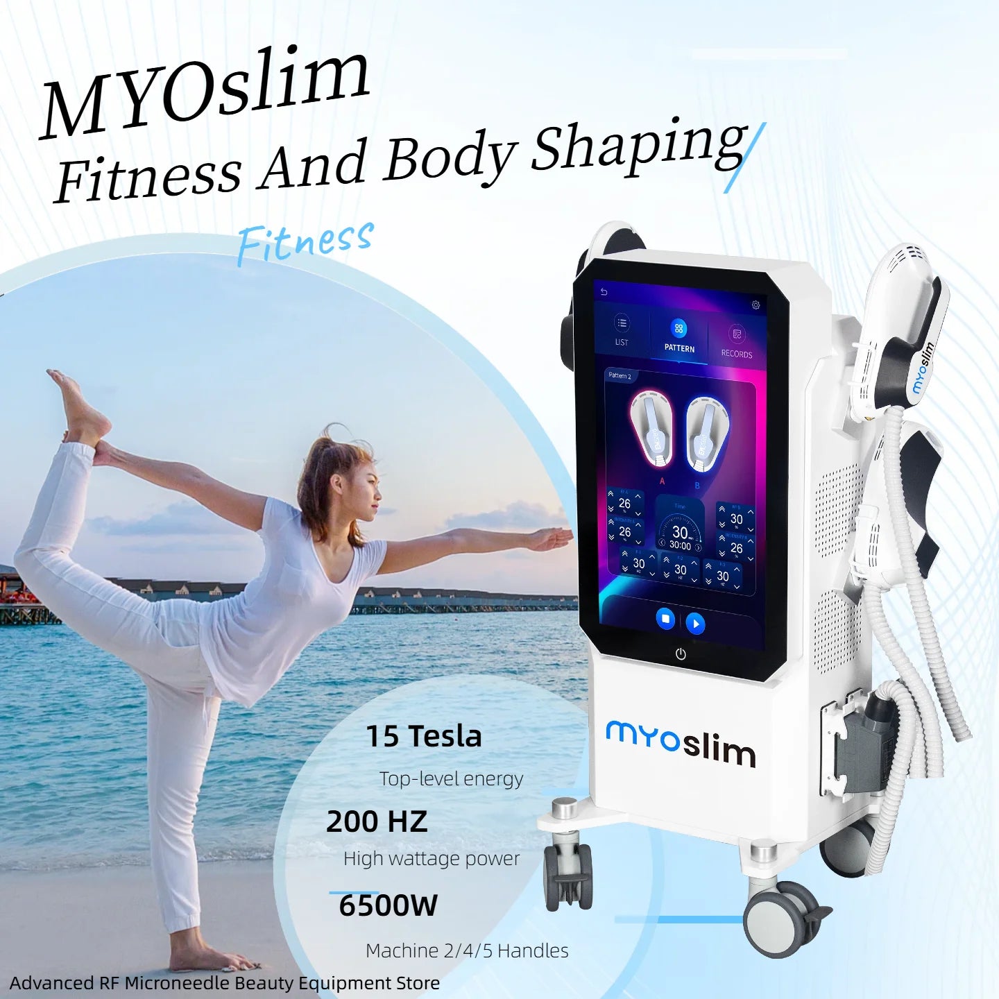 Experience focused energy and sculpted results with the Myoslim Ultra 15T 6500W High-Frequency Vibration HIEMT NEO machine.